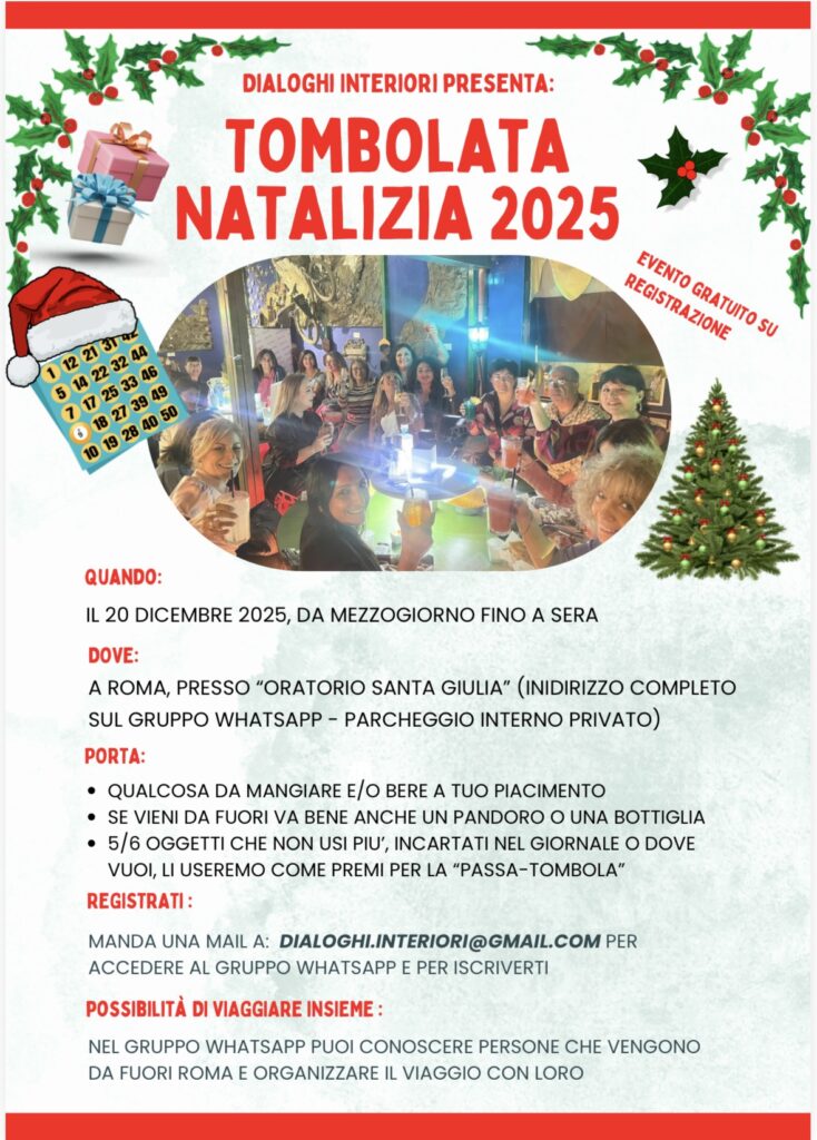 Ci vediamo sabato 20 dicembre, a Roma, presso l’oratorio di Santa Giulia (indirizzo completo sul gruppo whatsapp).